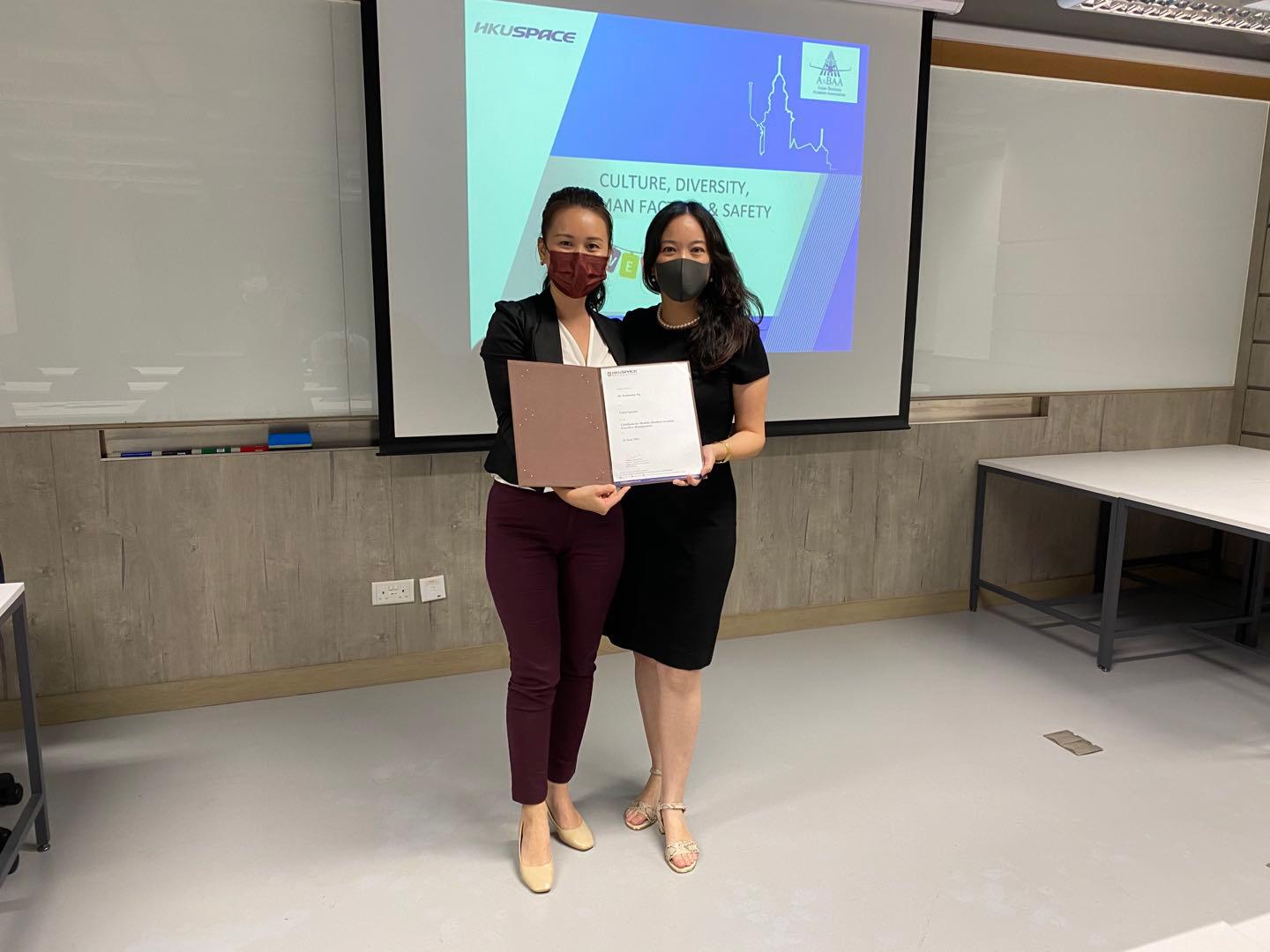 Top photo: AsBAA's BoG Amy Yang (left), and guest lecturer Katharine Ng, Managing Director, OneCrew (right) recently shared their insights and experience on human resources and human factors with students participating in the HKU SPACE's Business Aviation Executive Management course. The 10-week course began on 4 May 2021 and will conclude on 6 July 2021.