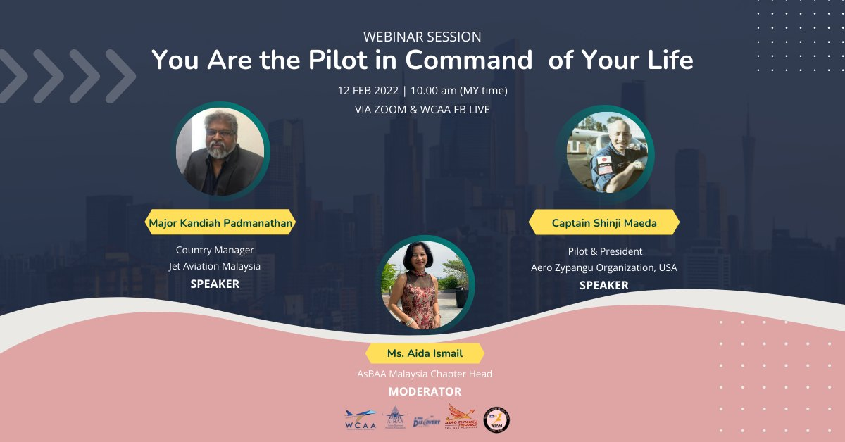 Last week, WCAA in collaboration with AsBAA Discovery, Women in Corporate Aviation, Aero Zypangu Organization, USA & Women in Aviation MIAT hosted its You Are the Pilot in Command of Your Life webinar. Speakers include Major Kandiah Padmanathan, (Country Manager, Ket Aviation Malaysia), Captain Shinji Maeda (Pilot & President, Aero Zypangu Organization, USA) and Aida Ismail (AsBAA Malaysia Chapter Head) as the moderator.