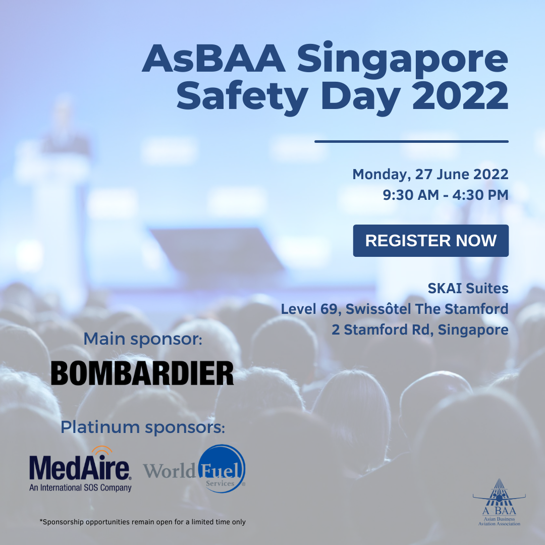 As part of Asian Business Aviation Week 2022 (AsBAA x CJI Asia) between 27 June to 1 July in Singapore, register now to save your seat or sponsor for AsBAA’s inaugural return to its signature physical events with the AsBAA Singapore Safety Day 2022!